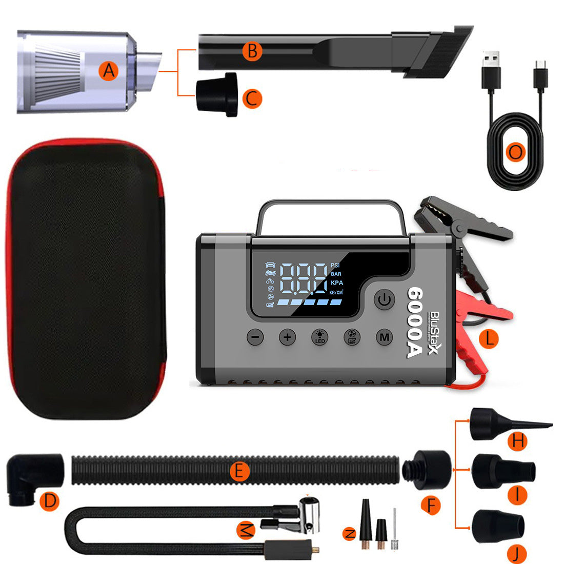 6250A peak current, easily jump-starts ALL gasoline vehicles and diesel vehicles up to 10L, stable operation from -20°C to 60°C.