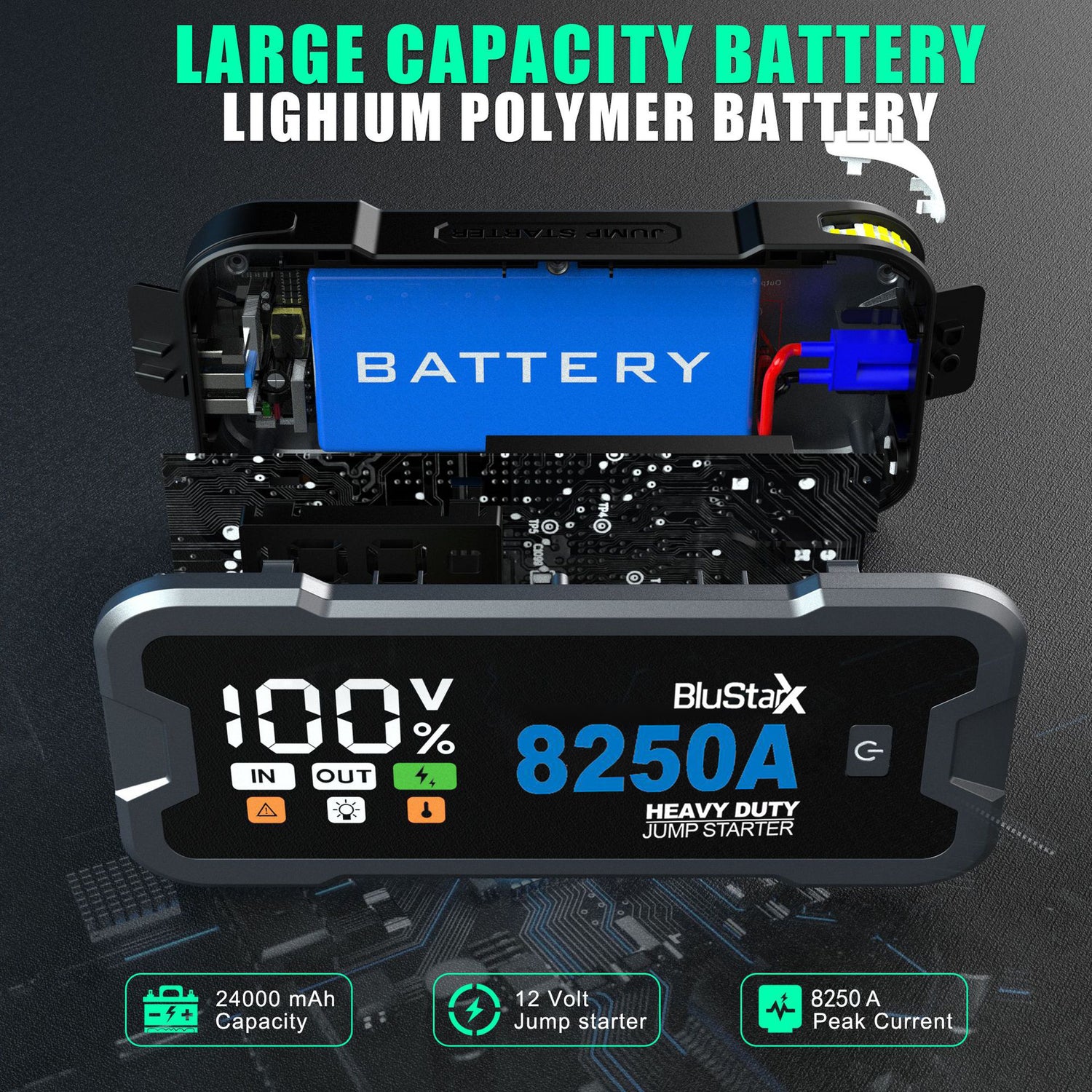 With over 8250A peak current, easily jump-starts ALL gasoline vehicles and ALL diesel vehicles, stable operation from -20°C to 60°C.